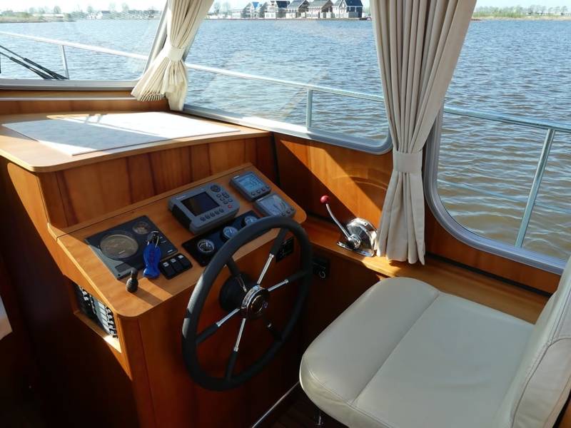 Dit luxe en comfortabele schip beschikt over de perfecte vaareigenschappen en is uitgerust met veel opties. De boegschroef helpt een handje bij het aanmeren, wegvaren of manoeuvreren op smalle wateren. Vanaf de comfortabele lederen kapitein stoel bedien je deze Linssen Grand Sturdy 25.9 met gemak. Aanwezige log en indicatoren zijn; roerstand indicator, dieptemeter, snelheidsmeter en kaartplotter. Uiteraard liggen de belangrijkste waterkaarten en mooiste routes aan boord voor je klaar.