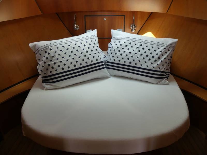 Beddengoed neem je zelf mee of bij ons te huren. Hoofdkussens zijn aan boord.