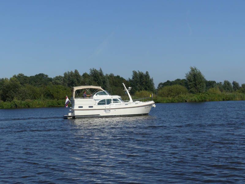 Een ideaal jacht voor het varen over de Friese meren. Met de stuurstand op het bovendek vaar je heerlijk in de buitenlucht, de verstelbare cabriokap maakt het varen in alle jaargetijden een fantastische beleving!