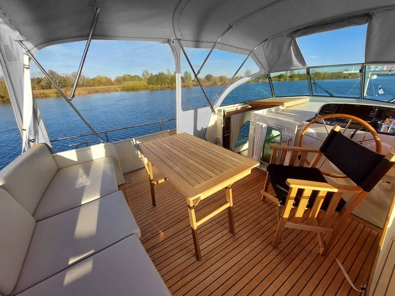 Het perfecte motorjacht voor het varen over de Friese meren. Met de stuurstand op het bovendek vaar je heerlijk in de buitenlucht, de verstelbare cabriokap maakt het varen in alle jaargetijden een fantastische beleving!